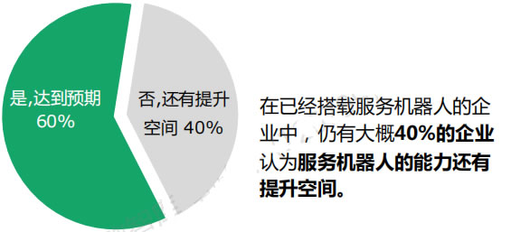 在對服務機器人做出了解的企業(yè)中,超過半數(shù)的企業(yè)希望服務機器人可以幫助他們 豐富產(chǎn)品矩陣并進行業(yè)務創(chuàng)新。