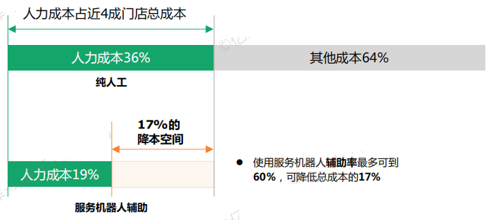 服務(wù)機器人可以使人工成本降低50%左右;酒店場景中服務(wù)機器人便于給客戶打造私密空間;旅游場景中服務(wù)機器人可以給出完全透明且準(zhǔn)確的信息