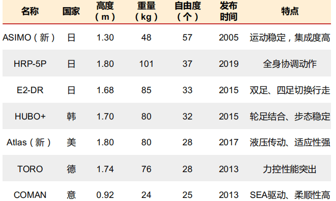 群雄并起,逐鹿人形機器人。日韓在人形機器人L域布局早,研究表現(xiàn)活躍;美國在人形機器人L域后來居上。波士頓動力研發(fā)的代表產(chǎn)品Atlas身G1.8m,體重80kg,具有28個關(guān)節(jié),可完成原地起跳轉(zhuǎn)身一周等流暢、G難度的“跑酷”動作,但主
