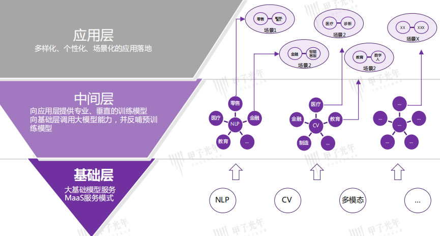 三層,變化為芯片層、框架層、模型層和應用層四層,其中模型層中會出現(xiàn)中間層、應用